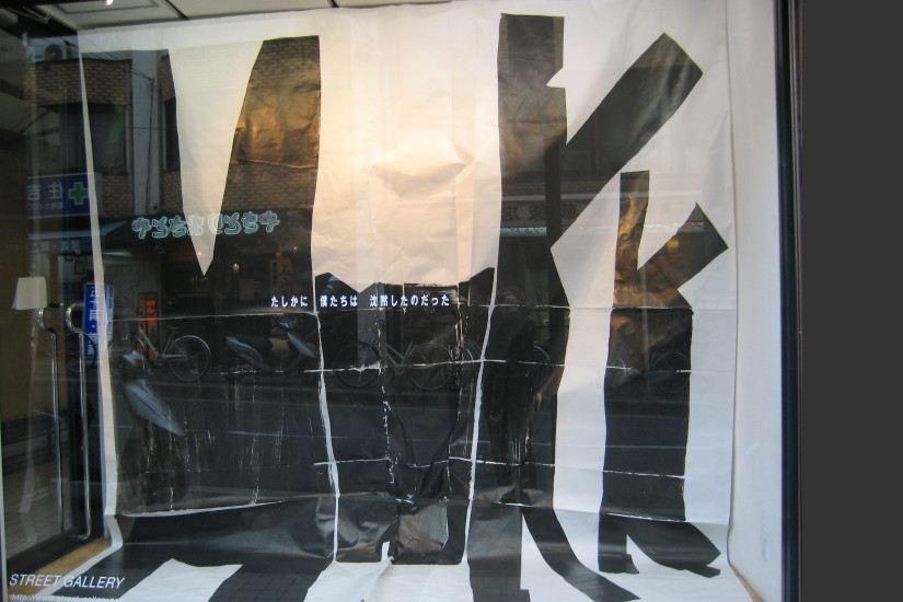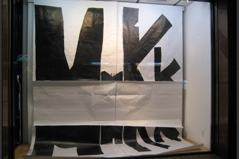 ユニット『ツルカメ』が制作した空間に浮かんだ文字は意味から遠ざかり一週間ごとにバラバラになっていきます。MmKk ・・ 黙。