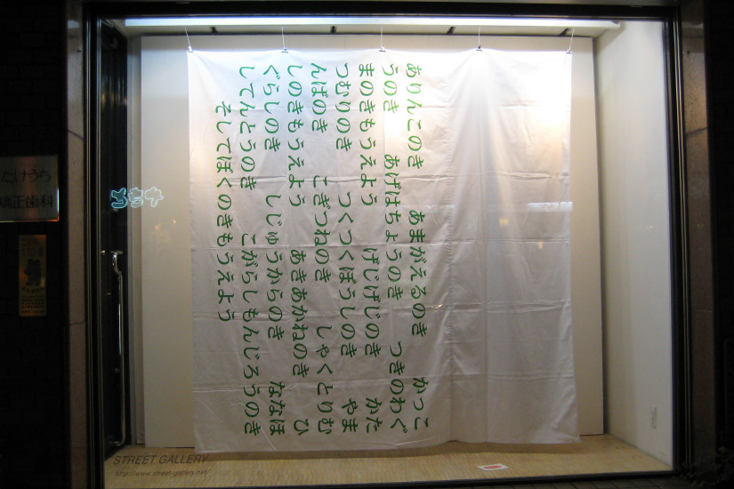 この2年間自転車にはまっています。自分の身体ひとつで風景の中に飛び込み、大地の香りを嗅ぎ、風を切って進む快感は最高です。自転車に限らず山に登ったりトレッキングすることも深い喜びをもたらしてくれます。ふと峠をゆく山頭火の後ろ姿が眼に浮かびます。ストリートのショウウィンドウに緑色の言葉の粒が降り注げばいいなと考えました。