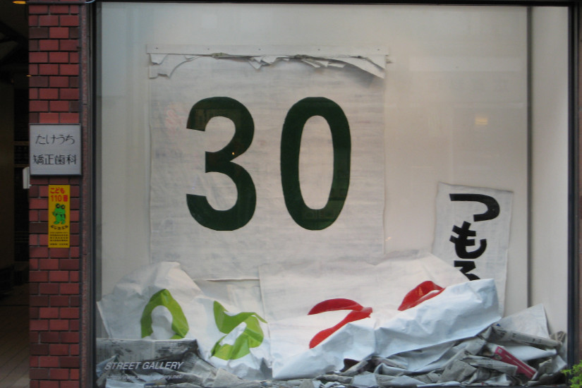 今回は、4月の1ヶ月間、新聞紙で作った巨大(全紙6枚貼りの)日めくりカレンダーを毎日めくり、それが時間の堆積となつて床につもっていきます。