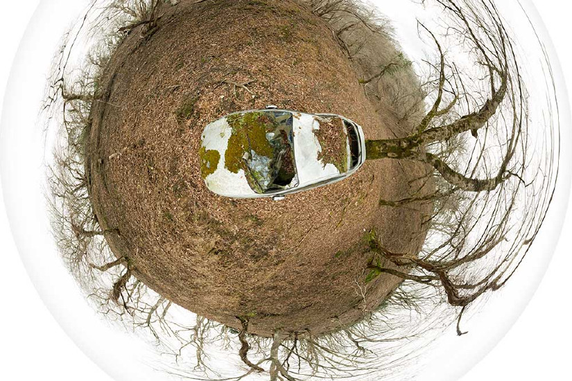 人里はなれた山中で撮ったパノラマ写真。人工物と自然との境界線における不確実性。